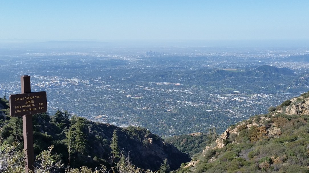 Castle Canyon Trail starts from Mt Rowe Railway Trail on top of the Echo Mountain. My previous post on Echo Mountain has trailhead information. We reached at Inspiration Point after 4.62 miles and 2909 feet in elevation gain. We ate the delicious sandwiches Jackie made and shared snacks while enjoying the view.