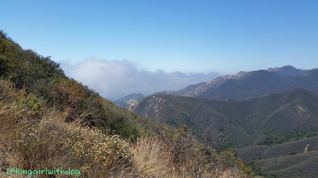 Hike to Montecito Peak would be too hot for the dogs at this time of the year. That’s why I made Xena sit out on this one. After a mile or so, we started to gain elevation. After a while, the dirt terrain changed to rocky and the slope got noticeably steeper. Eventually, we caught up with clouds.