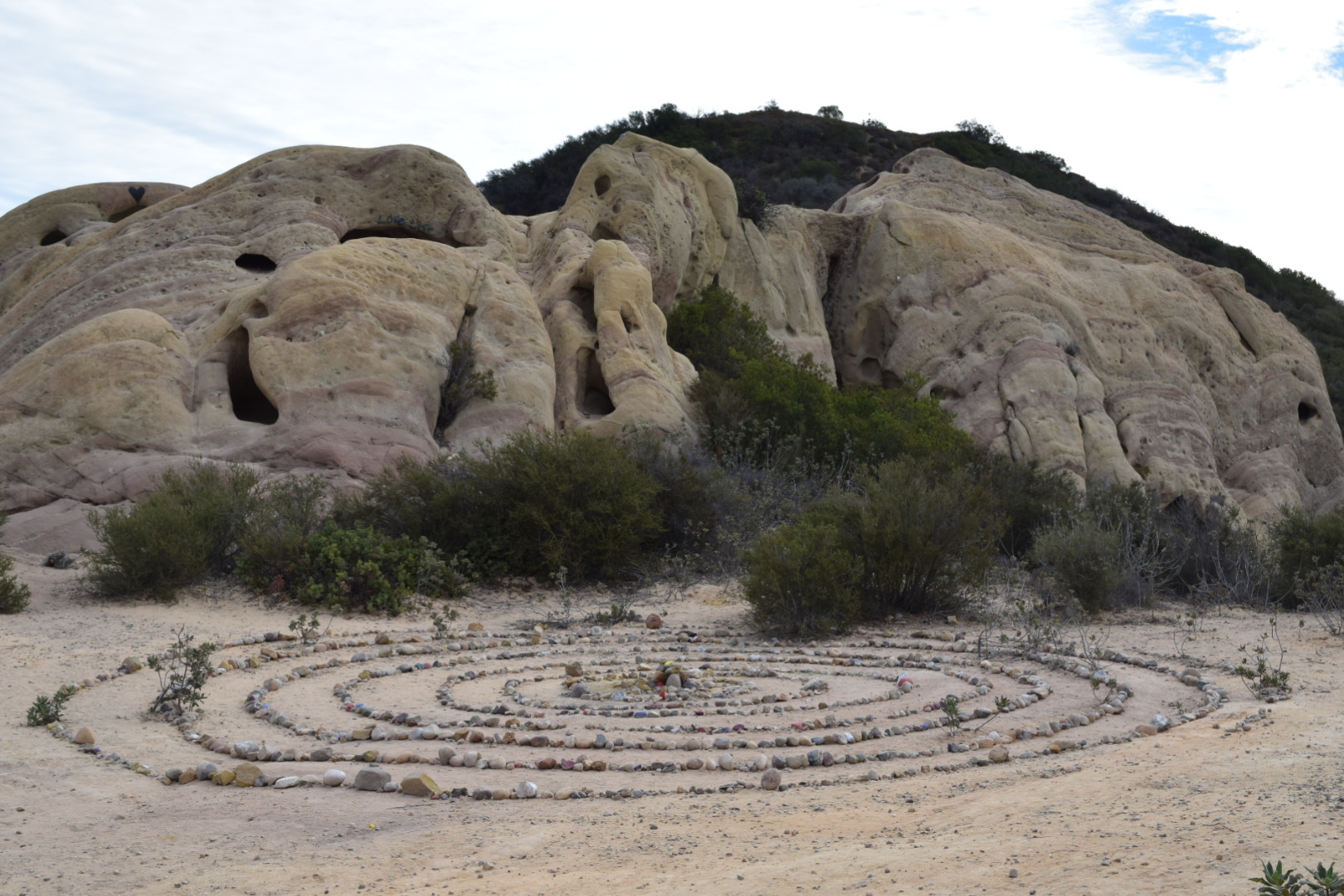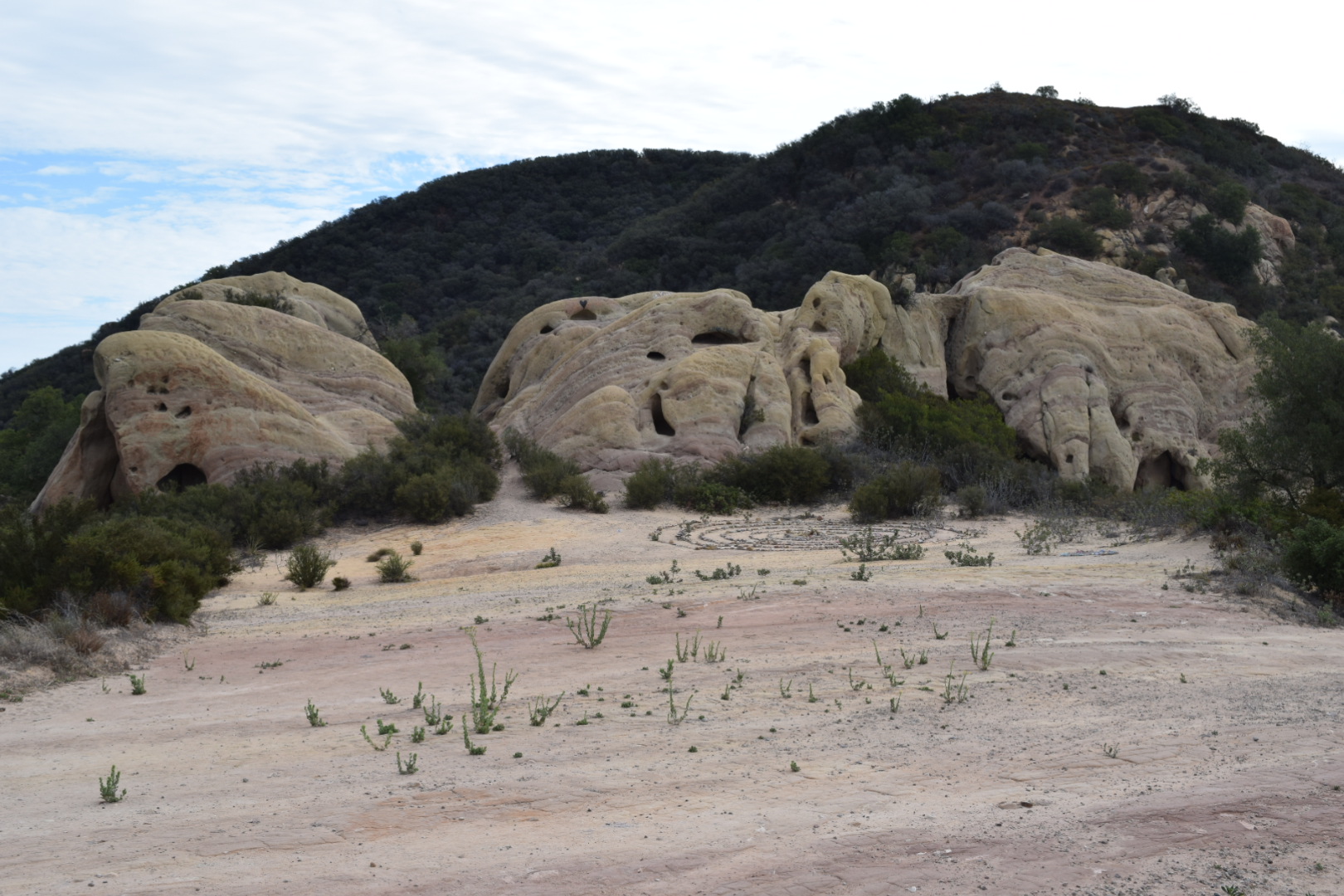 Since I saw pictures from here, I’ve been wanting to see the rings of rocks myself. About 0.75 miles into the hike, Hazel yelled, “Your Rocks!!”. We reached Corral Canyon Cave and the rings of rocks in front of it. I was not disappointed. 🙂