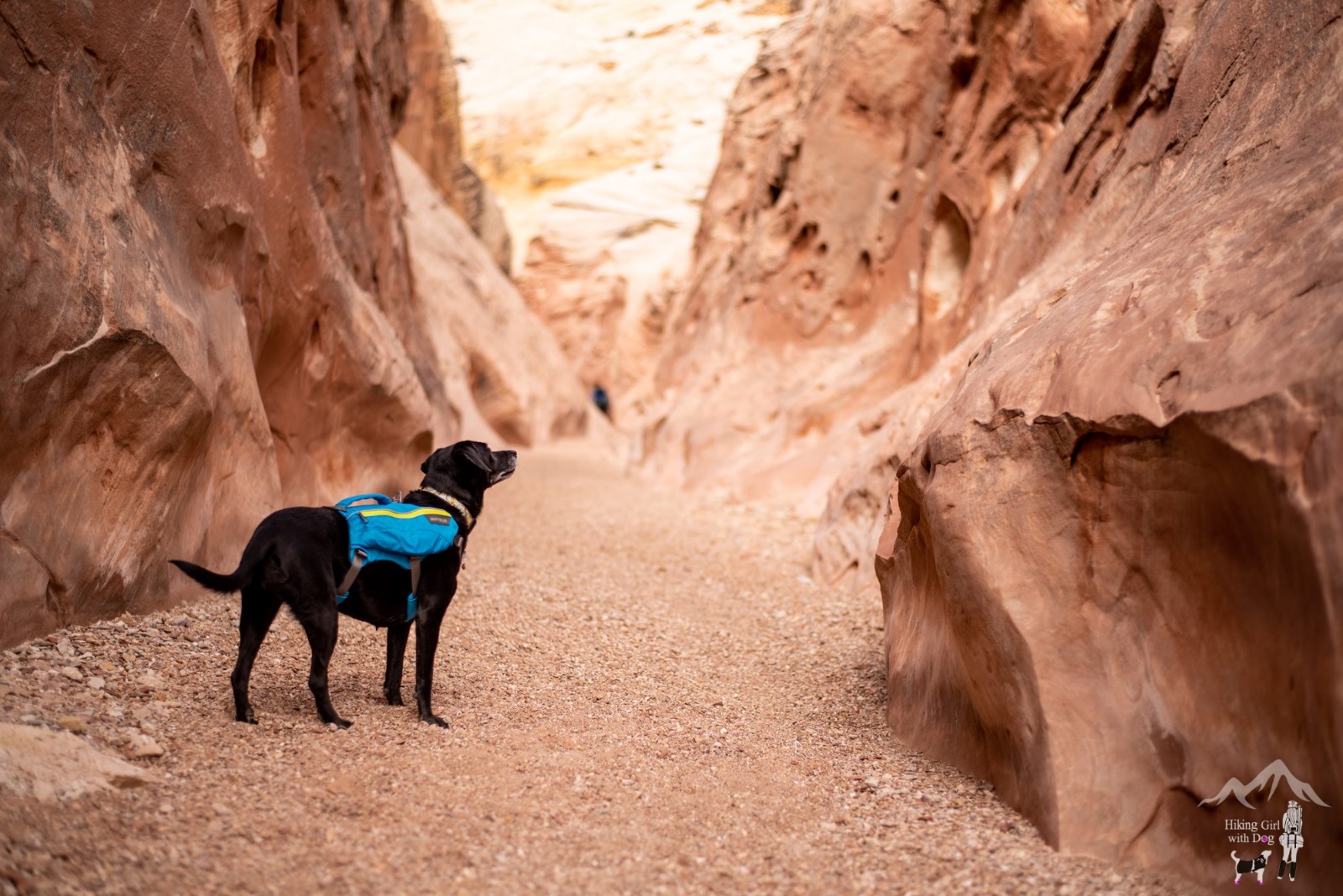 I highly recommend doing this hike during cooler months as it is exposed and almost 9 miles long. We did this in February while visiting Moab and we experienced both dry and snow conditions. Be sure to pack plenty of water for you and your pup.