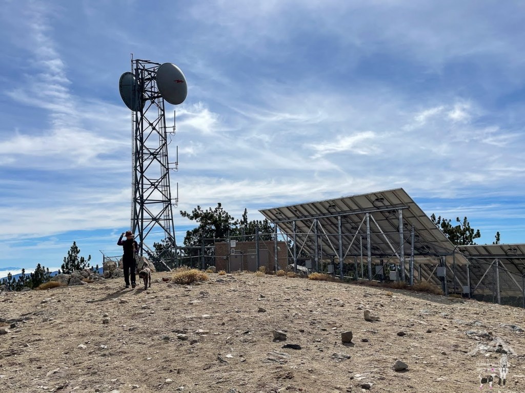 After 1.7 miles, the trail will split again. Leave the fire road and climb up the small hill on your right toward the solar-powered tower.