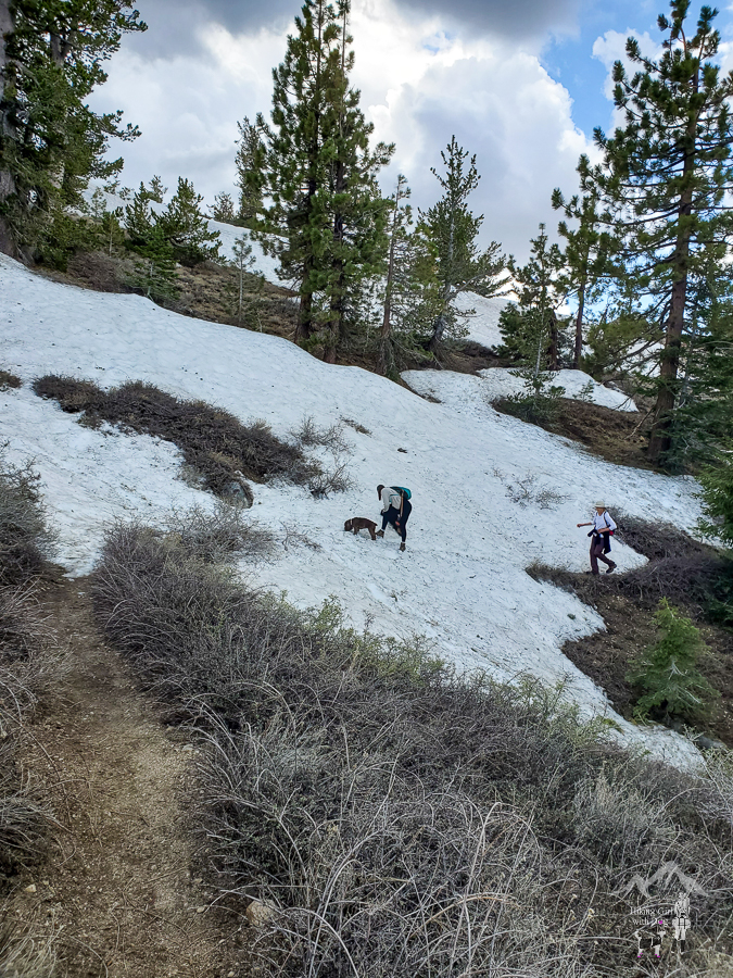 East Tumamait Trail – 21W03 to Sawmill Mountain is closed during winter and opens on May 1. I gave it a couple of weeks before I led a group hike. There were still patches of snow on the paths to Mt Pinos and Sawmill Mountains. Dogs loved it.