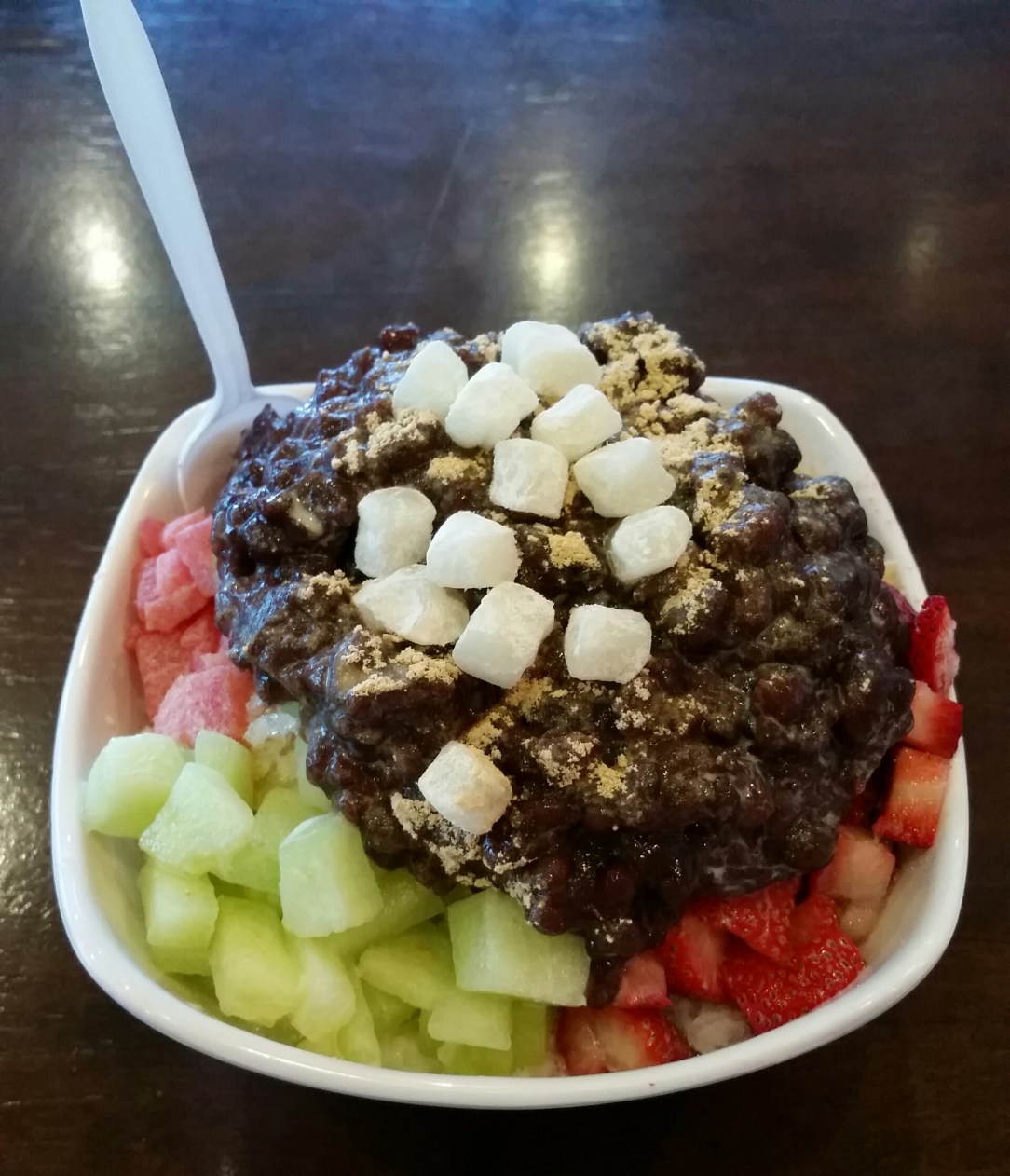 It cannot get any more summer in a bowl than this. Let me introduce my old time favorite summer eating since childhood. Korean style shaved ice. It’s called potbingsoo (pot-bing-soo) which translates to “red bean shaved ice”. Traditional potbingsoo is always topped with cauldron-cooked red beans and has mochi (sticky rice cake). The ones I used